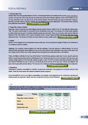 Read the text and fill in the diagram by putting a tick below the themes that are related to the
