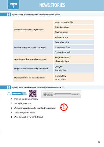 11  Now, consider the questions in Part 10 to create the content of a news story you have read or   14 In pairs, study the notes related to sentence stress below.