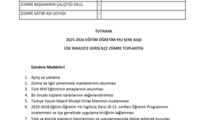 2025-2026 Eğitim-Öğretim Yılı Lise İngilizce Dersi Sene Başı İlçe Zümre Toplantı Tutanağı (TYMM ile Uyumlu)